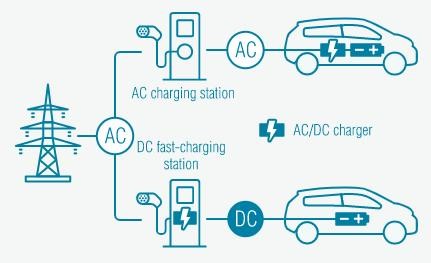 Een elektrische auto wordt – uiteraard - opgeladen met elektriciteit. Dit gebeurt met gelijkstroom, omdat alleen deze ‘stroomsoort’ in een accu kan worden opgeslagen, echter ons stroomnet voorziet niet in gelijkstroom maar alleen in wisselstroom. Voor deze wisselstroom hebben we al in de negentiende eeuw gekozen omdat hierbij een hogere spanning over een langere afstand getransporteerd kon worden die aan het einde van de rit met een transformator omgezet kan worden in de laagspanning die wij overal gebruiken.